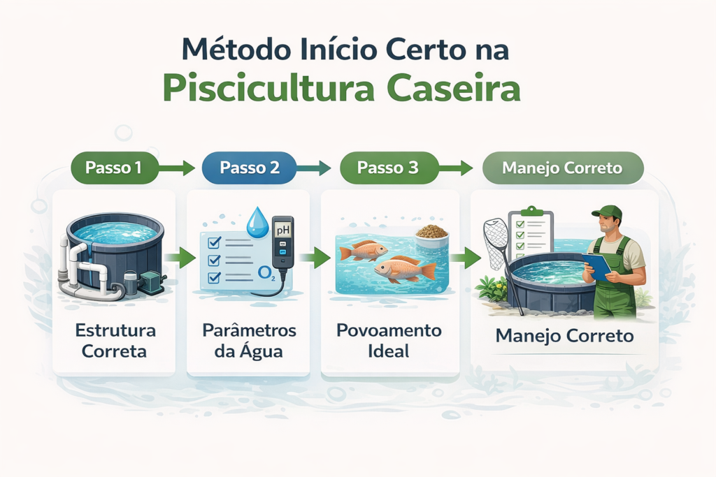 Não. O método é voltado para piscicultura caseira, usando estruturas como caixa d’água, tanque simples ou sistemas compactos. Muita gente começa em quintal, sítio pequeno ou área reduzida.