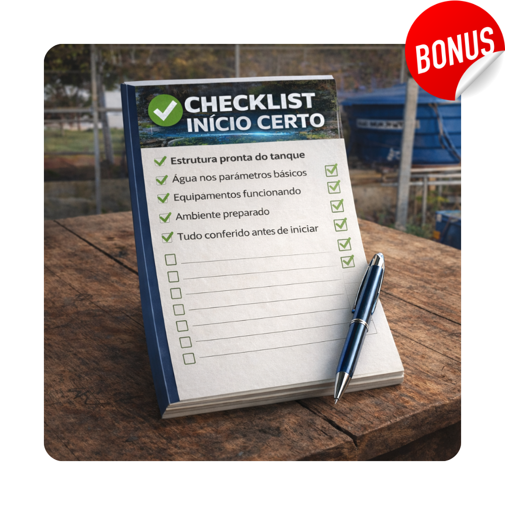 Você também recebe um checklist prático com os pontos que precisam estar corretos ANTES de colocar os peixes no tanque.